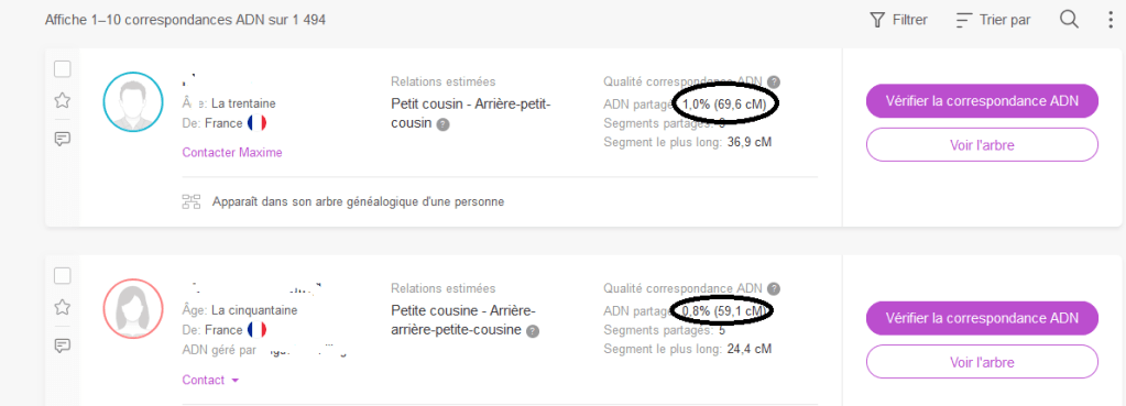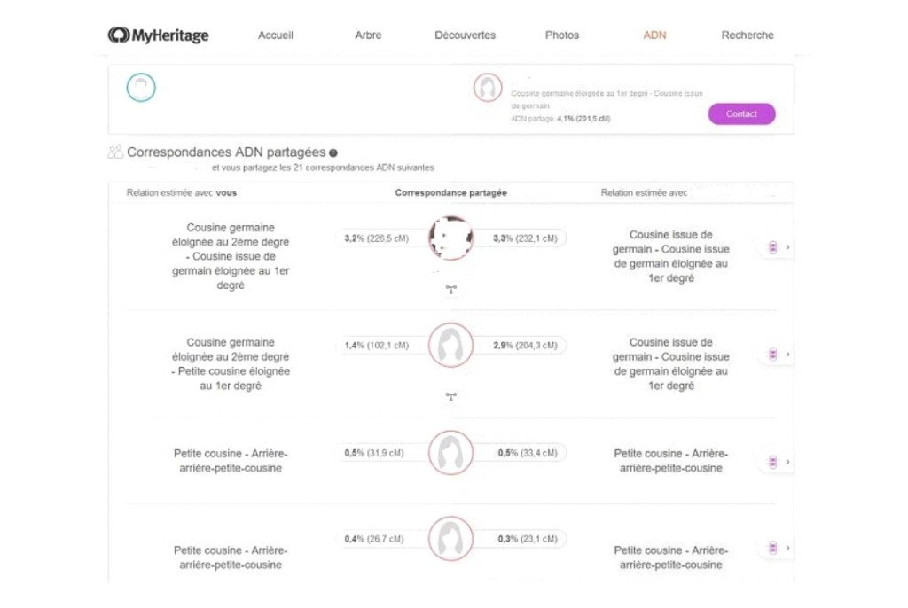 – Correspondances ADN : Elles sont des outils puissants pour découvrir des relations de parenté, notamment en généalogie. Lorsqu’on effectue un test ADN, les résultats révèlent des individus avec qui on partage des segments d’ADN, indiquant un lien familial plus ou moins éloigné. Plus le pourcentage d’ADN partagé est élevé, plus la relation est proche.